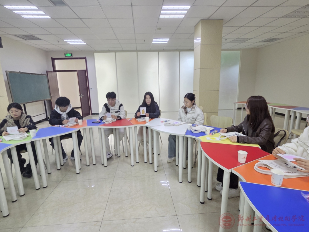 活动伊始,心理中心岳培娜老师以“情绪色彩故事”小游戏开启热身环节。同学们随机抽取一种颜色卡片,并用卡片上的颜色描述一件生活中的事情,让大家在轻松的叙事中,自然梳理“颜色如何影响情绪、情绪如何体现在生活里”。愉快地互动快速打破了陌生感,也让大家逐渐放下拘谨,沉浸在创作的氛围中。