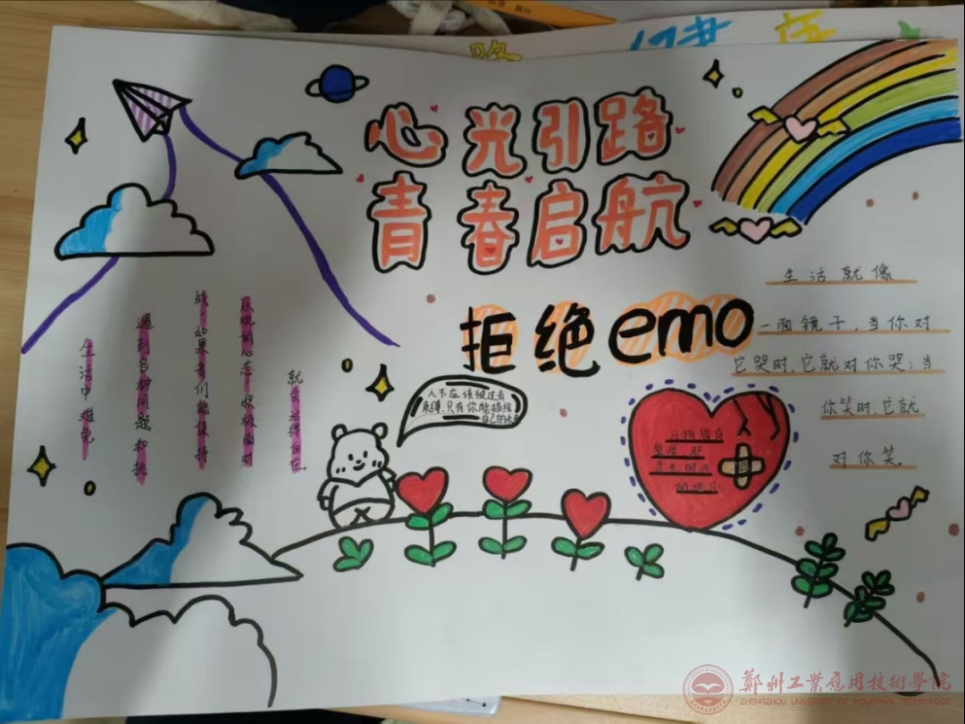 建工学院开展以 “拒绝 EMO” 为主题的创意手抄报制作活动。建工学子们用图文并茂的手抄报,展示自己对专业的热爱与未来规划。在创作过程中,他们梳理职业理想,将目标可视化,驱散内心的迷茫与消极情绪,以积极的心态锚定前进方向。